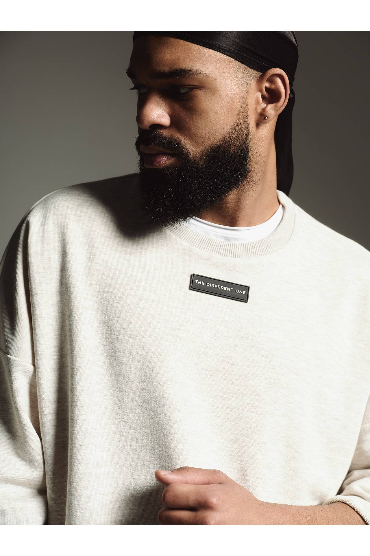 Крій футболки з oversize рукавами 3/4, необробленими краями та силіконовою біркою DIFFERENT ONE.