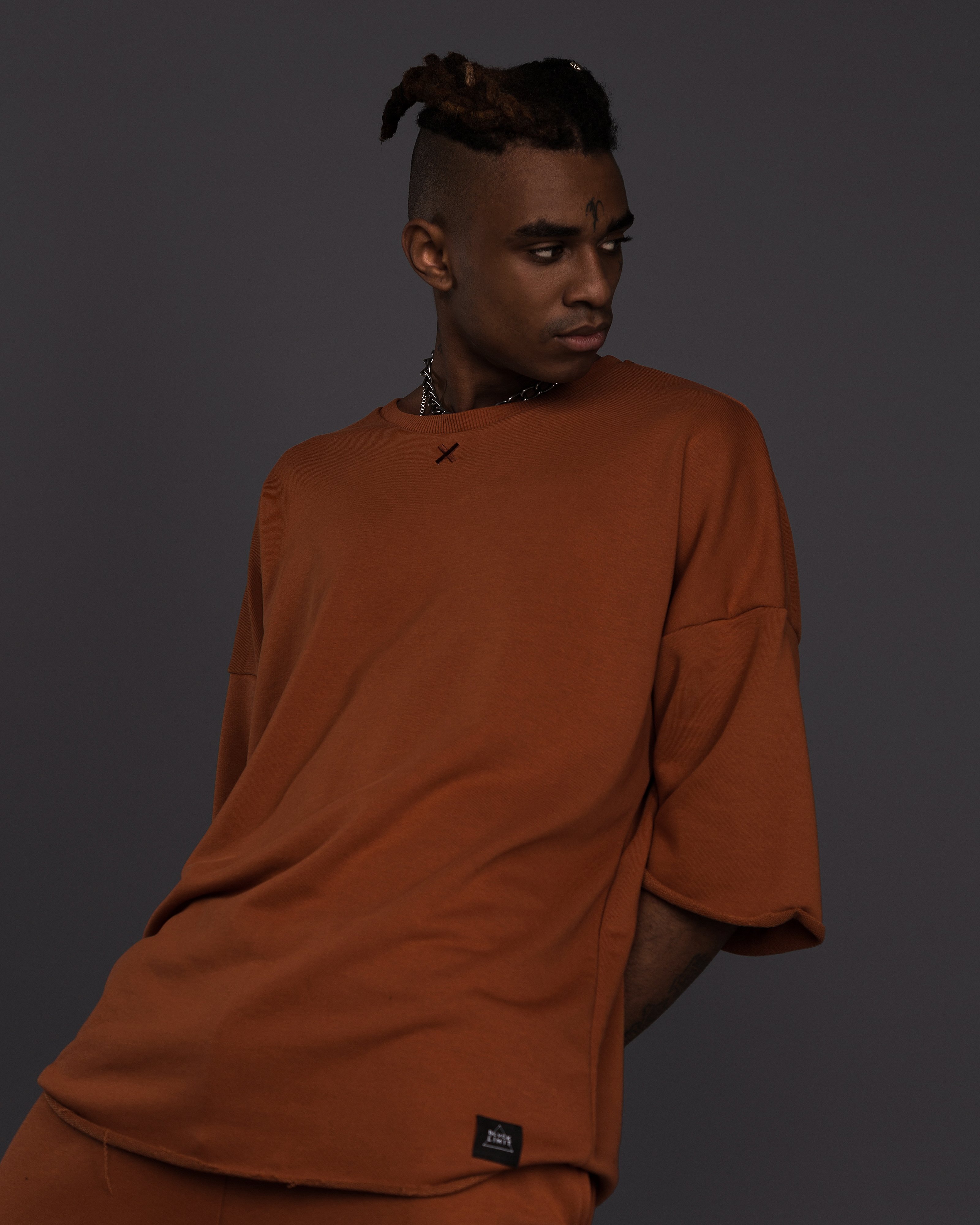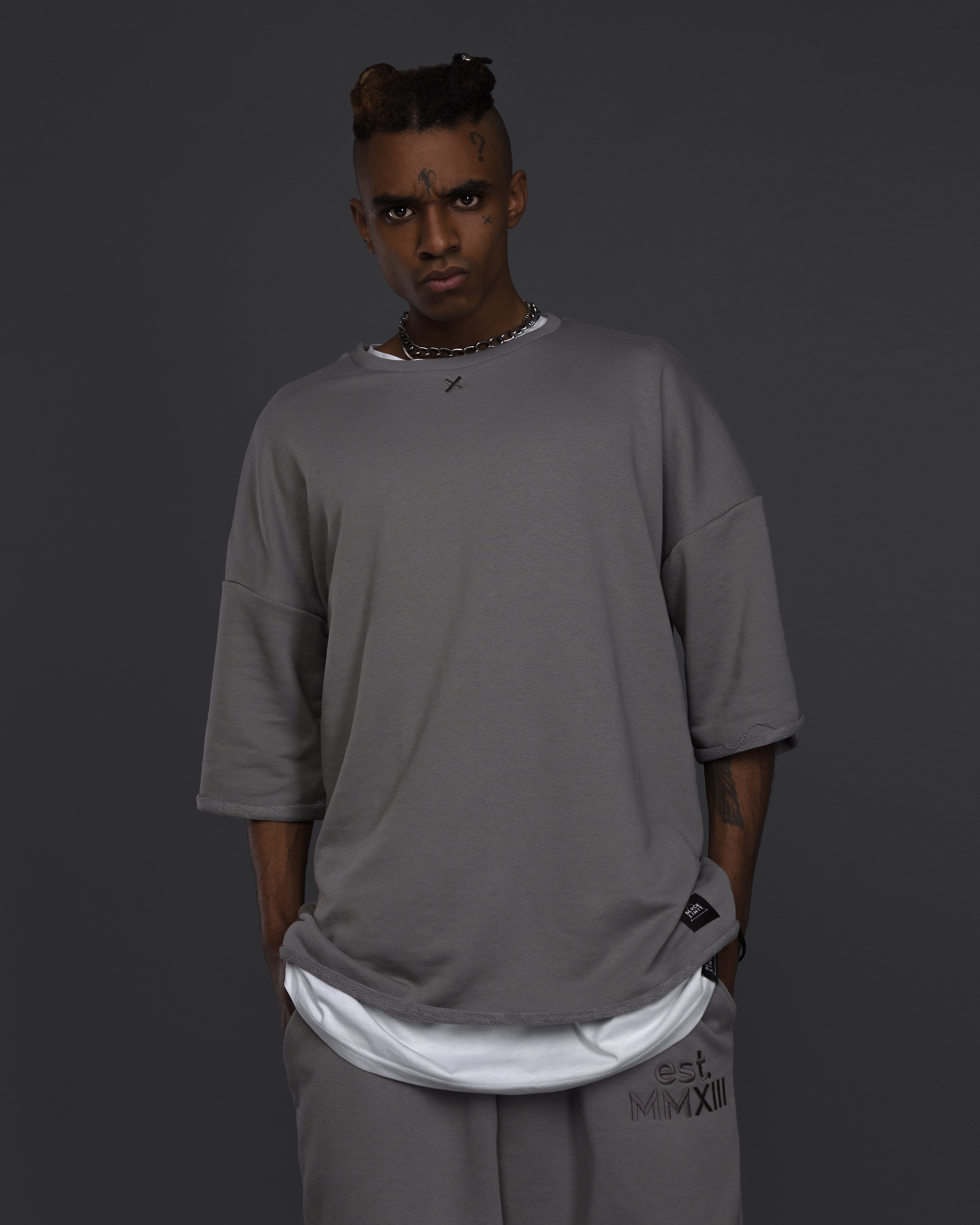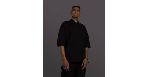 Футболка OVERSIZE зі стійкою вишивка ХРЕСТ чорна