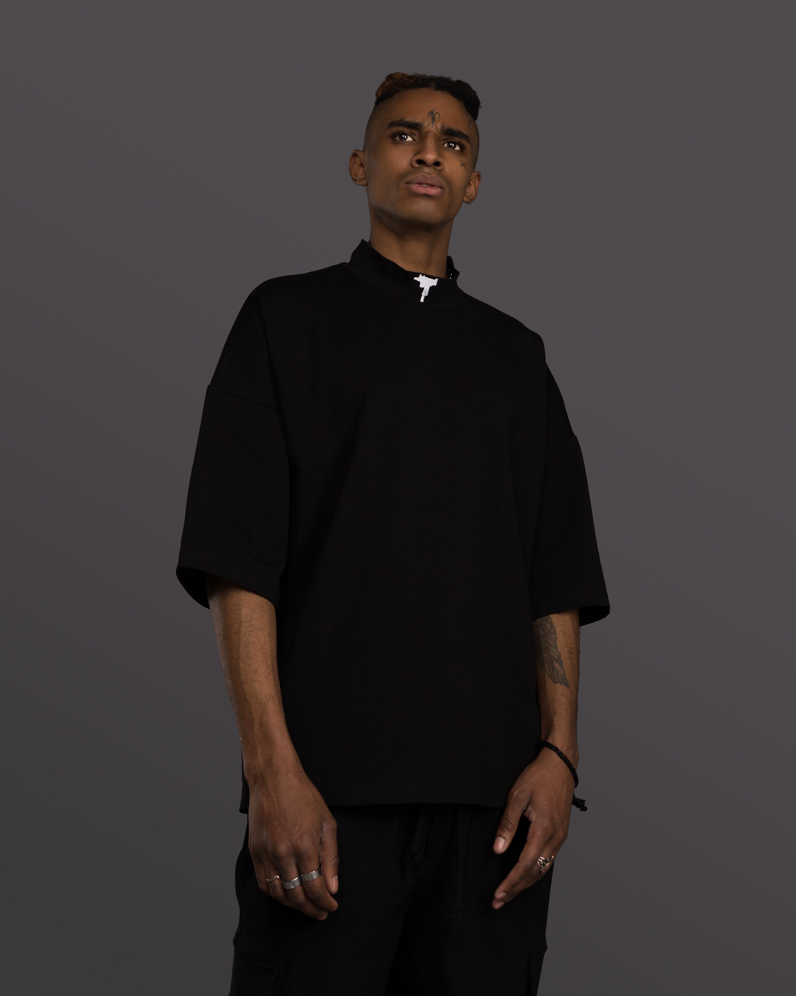 Футболка OVERSIZE зі стійкою вишивка BLVCK чорна
