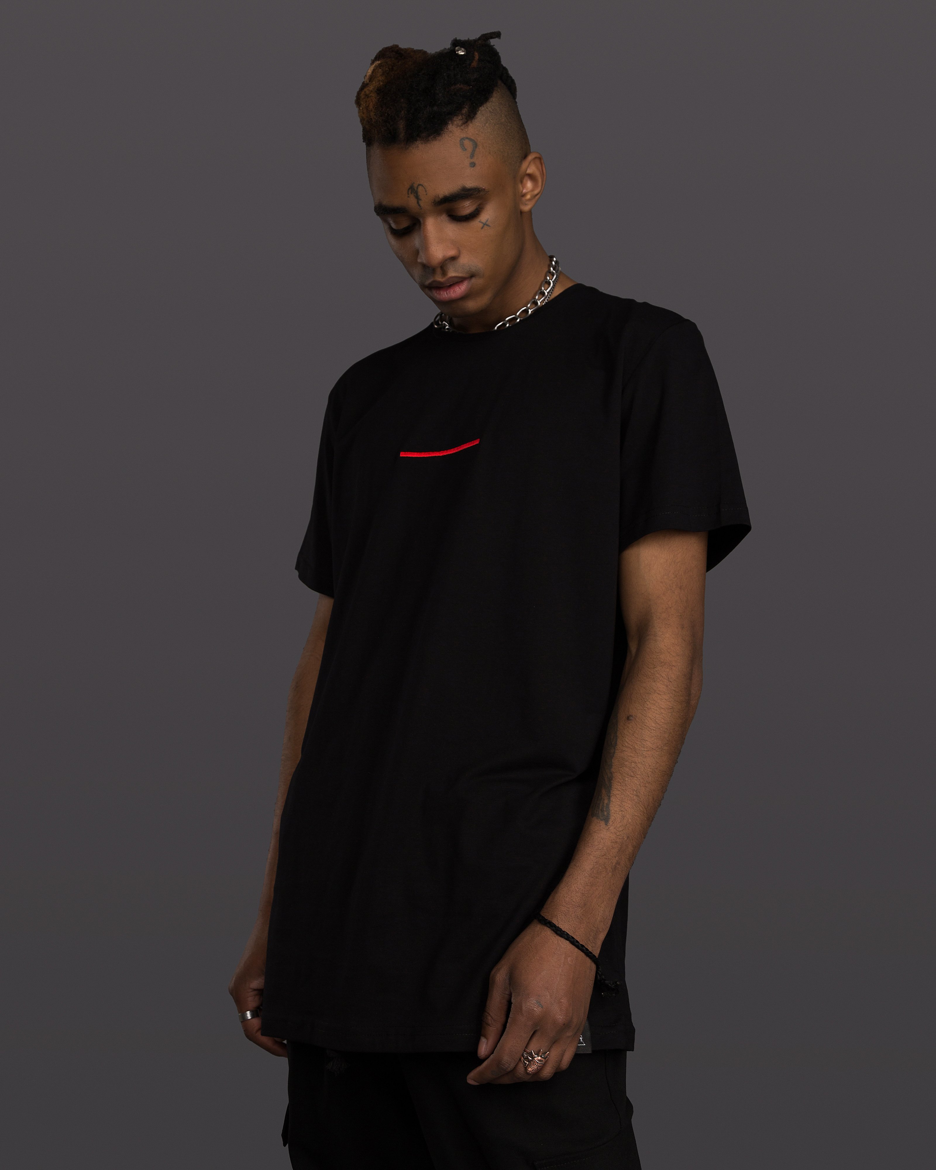 Футболка чоловіча з вишивкою ЧЕРВОНА СМУЖКА чорна
