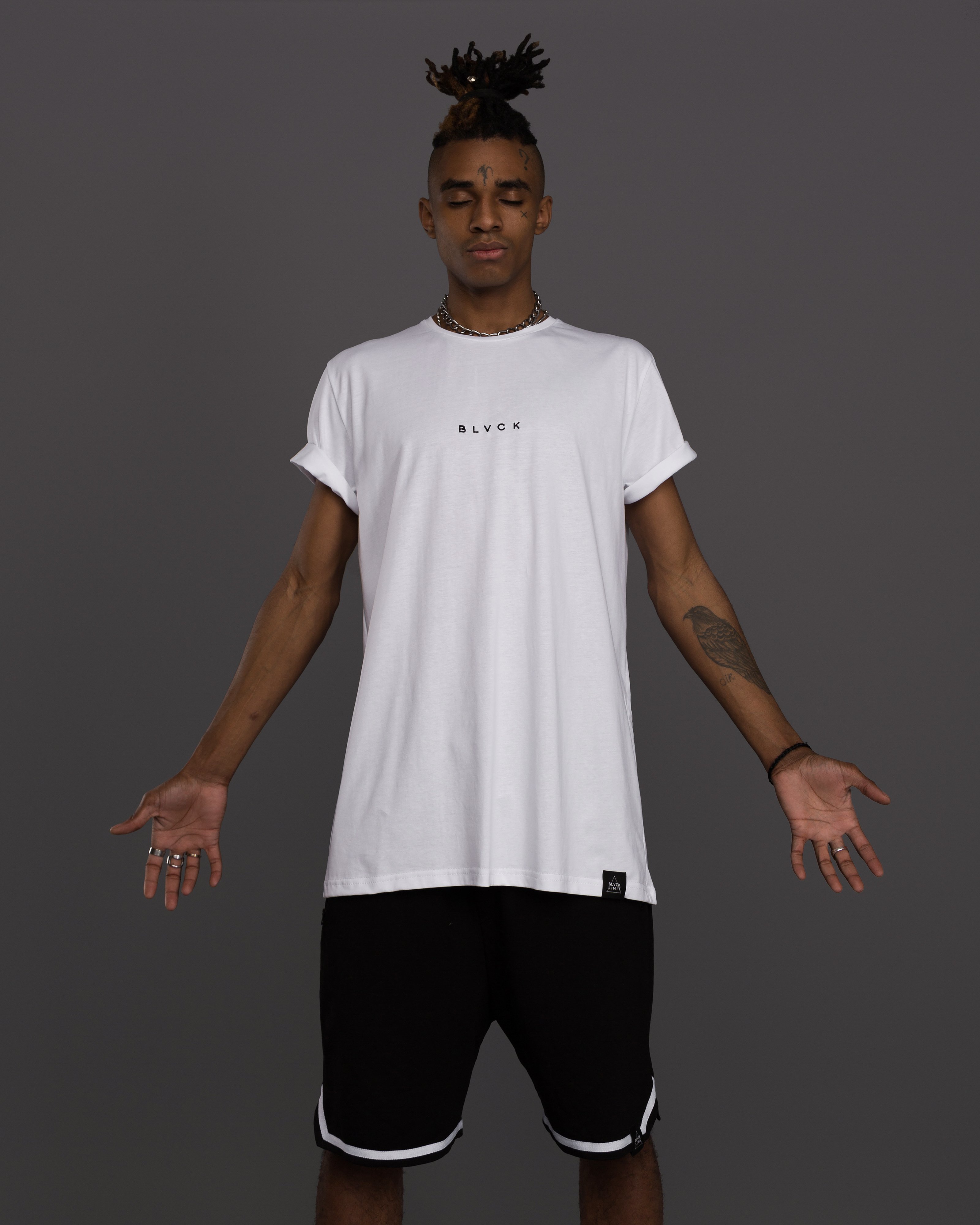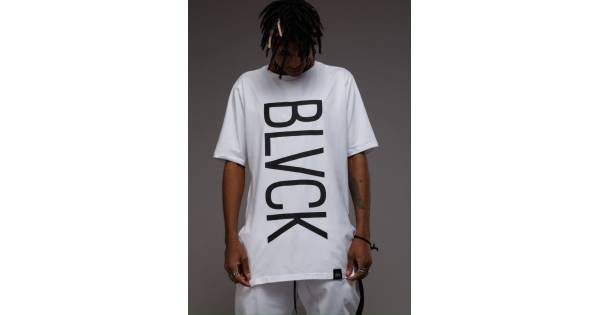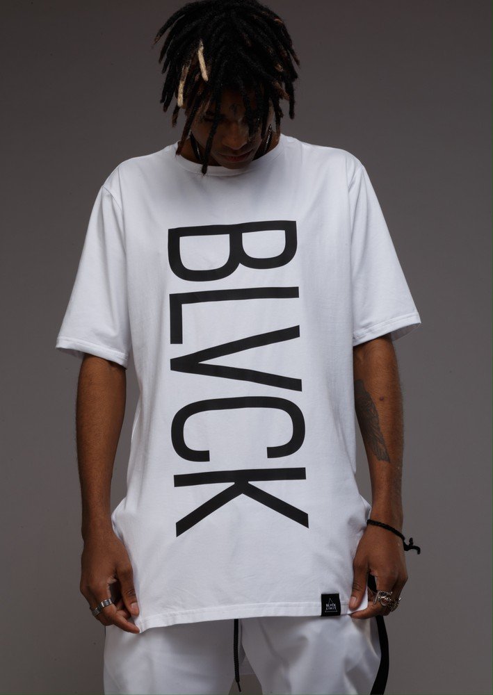 Футболка принт BLVCK вертикальний біла