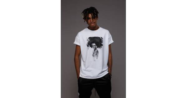 Футболка з розрізами і бічним принтом біла