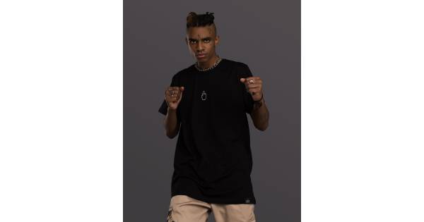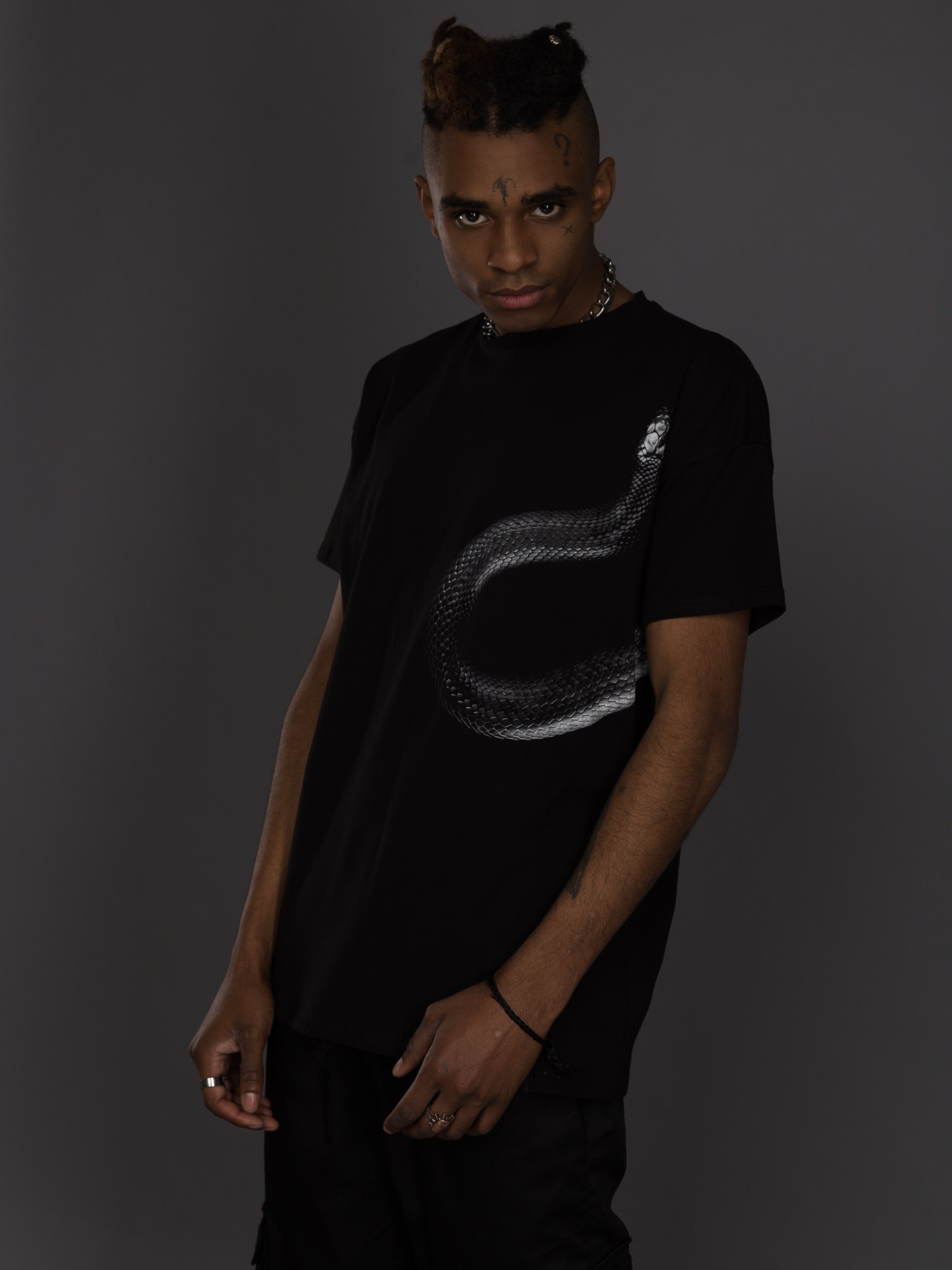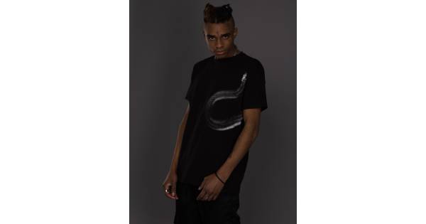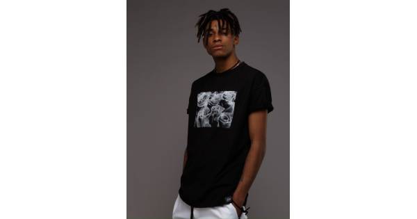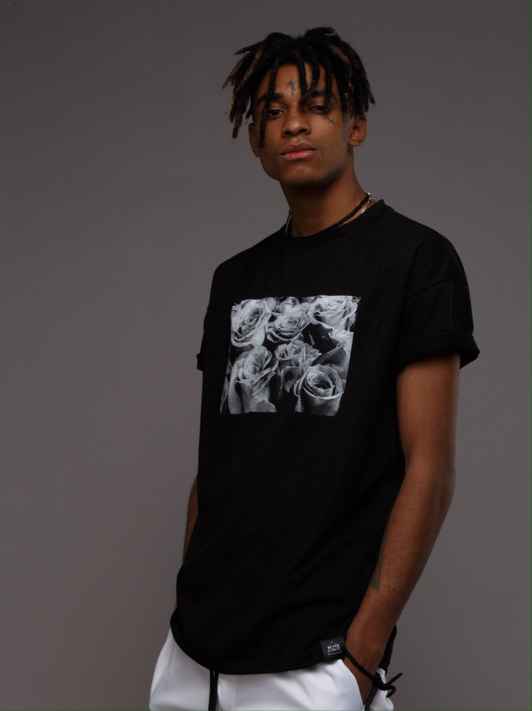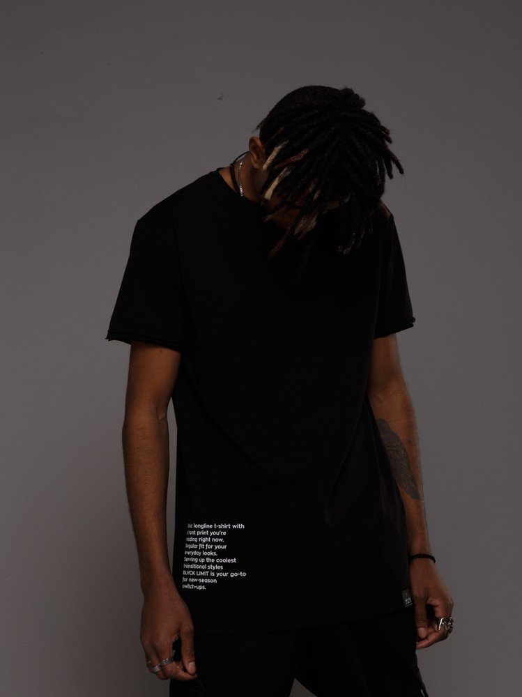 Футболка з розрізами і бічним принтом чорна