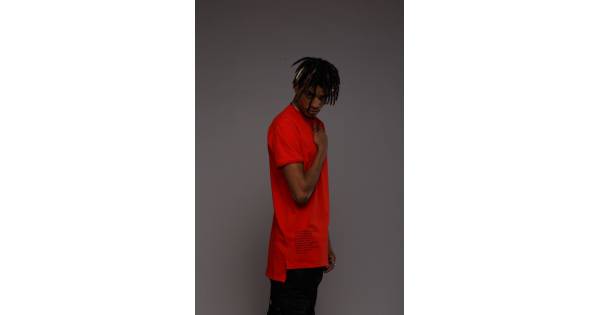 Футболка з розрізами і бічним принтом червона