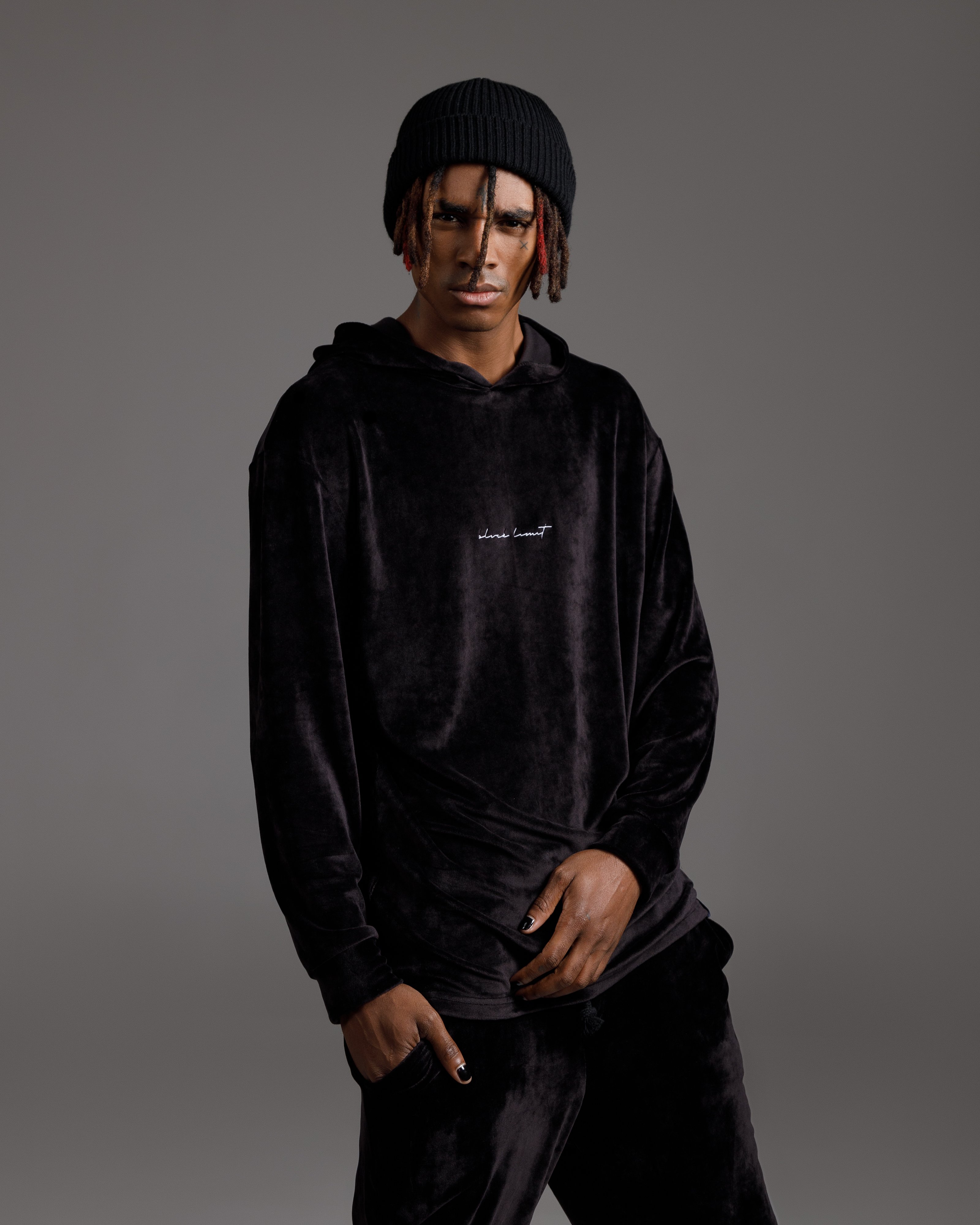 Худі чорний з білою смужкою внизу