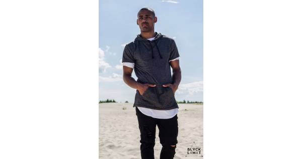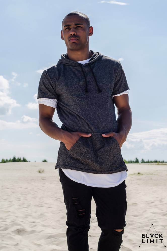 Лонгслив чоловічий подовжений з рукавами з екошкіри чорний