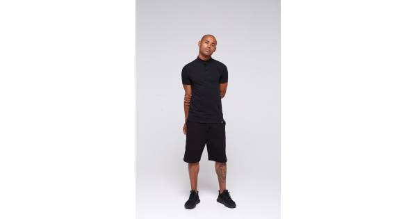 Річ ідеально лягає точно по фігурі, підкреслюючи її красу. Чорний колір поглинає недоліки, приховуючи небажані опуклості. Розташовані по боках змійки регулюють прилягання. Це робить поло одночасно класичним і завужені на вибір власника. Рішення у бік подовження дозволило зробити модель універсальною для людей з різним ростом. Характерний візуальний візерунок світлого поділу спереду – дизайнерський хід, надає об'ємності. Тканина на рукавах більш щільна та еластична по краях. Використовувана частка поліестеру підвищила невразливість чоловічого поло до розтяжок. Довгий час залишиться в первісній формі після кожного прання.