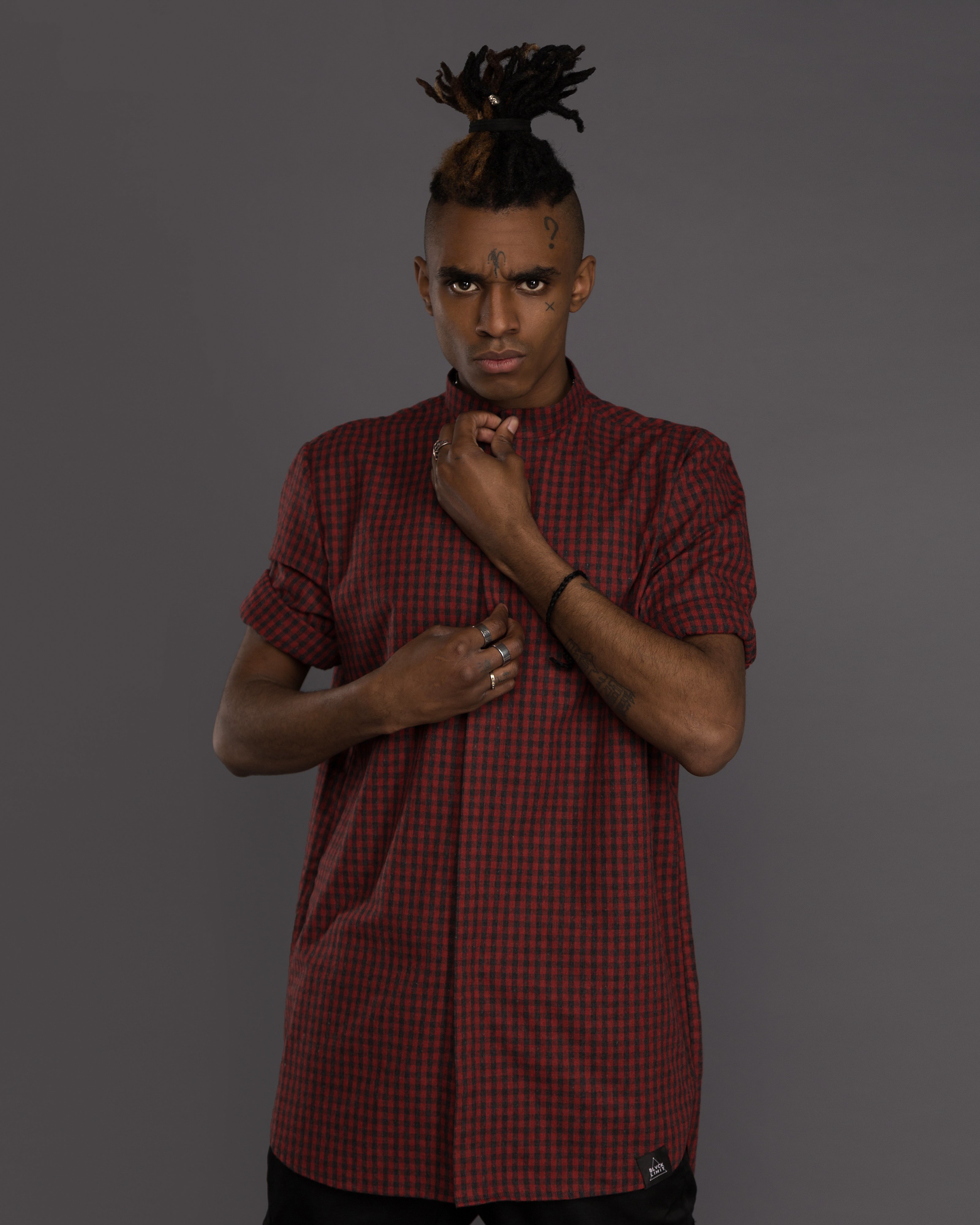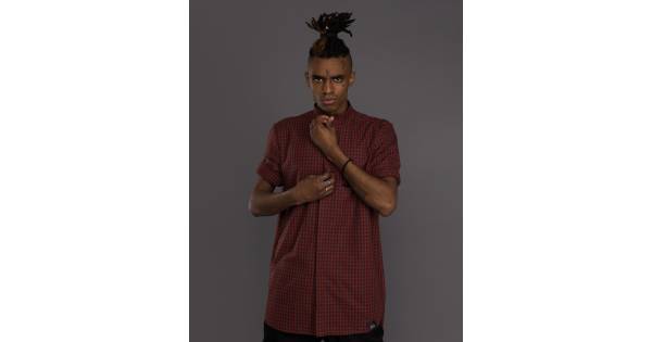 Сорочка подовжена в сіру клітку з коротким рукавом