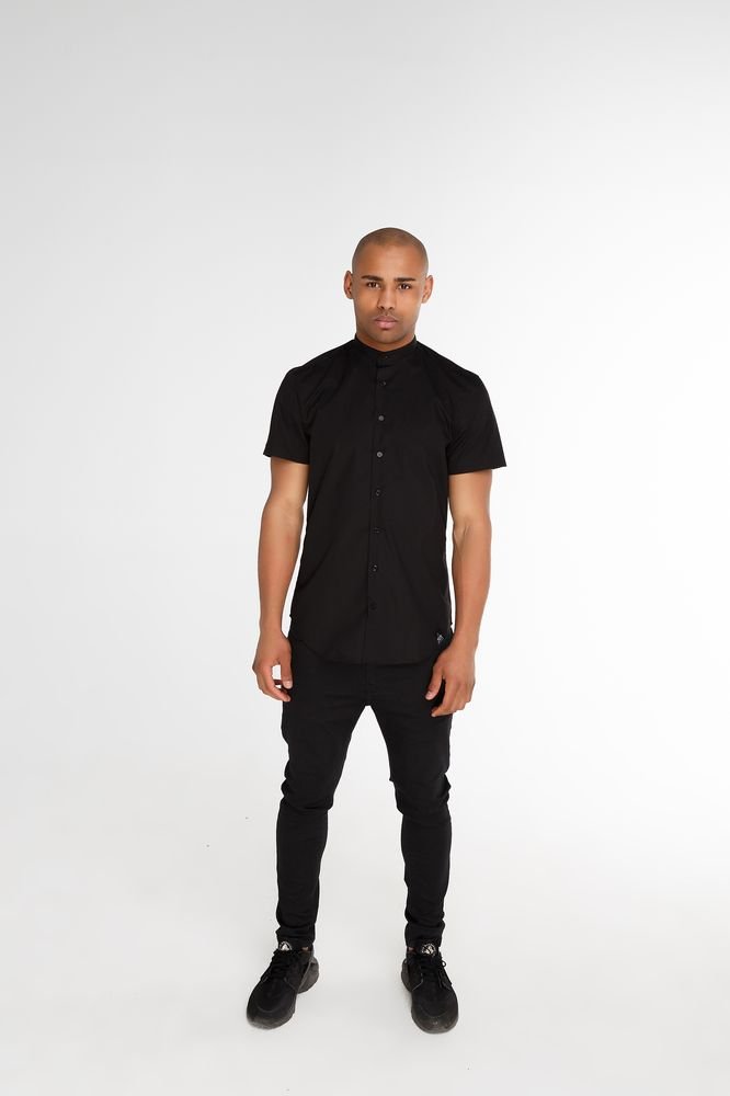 Сорочка чоловіча без коміра з коротким рукавом чорна