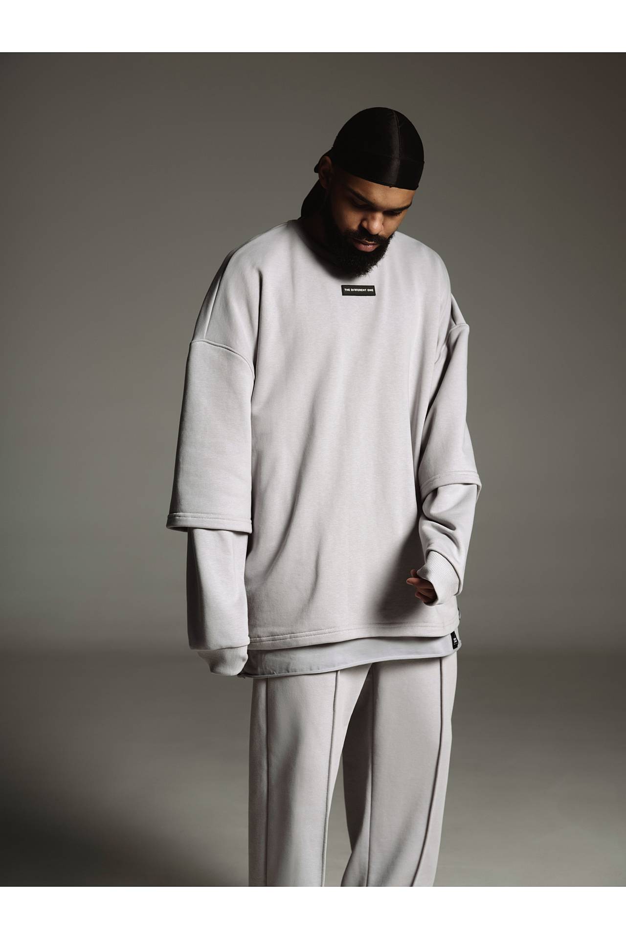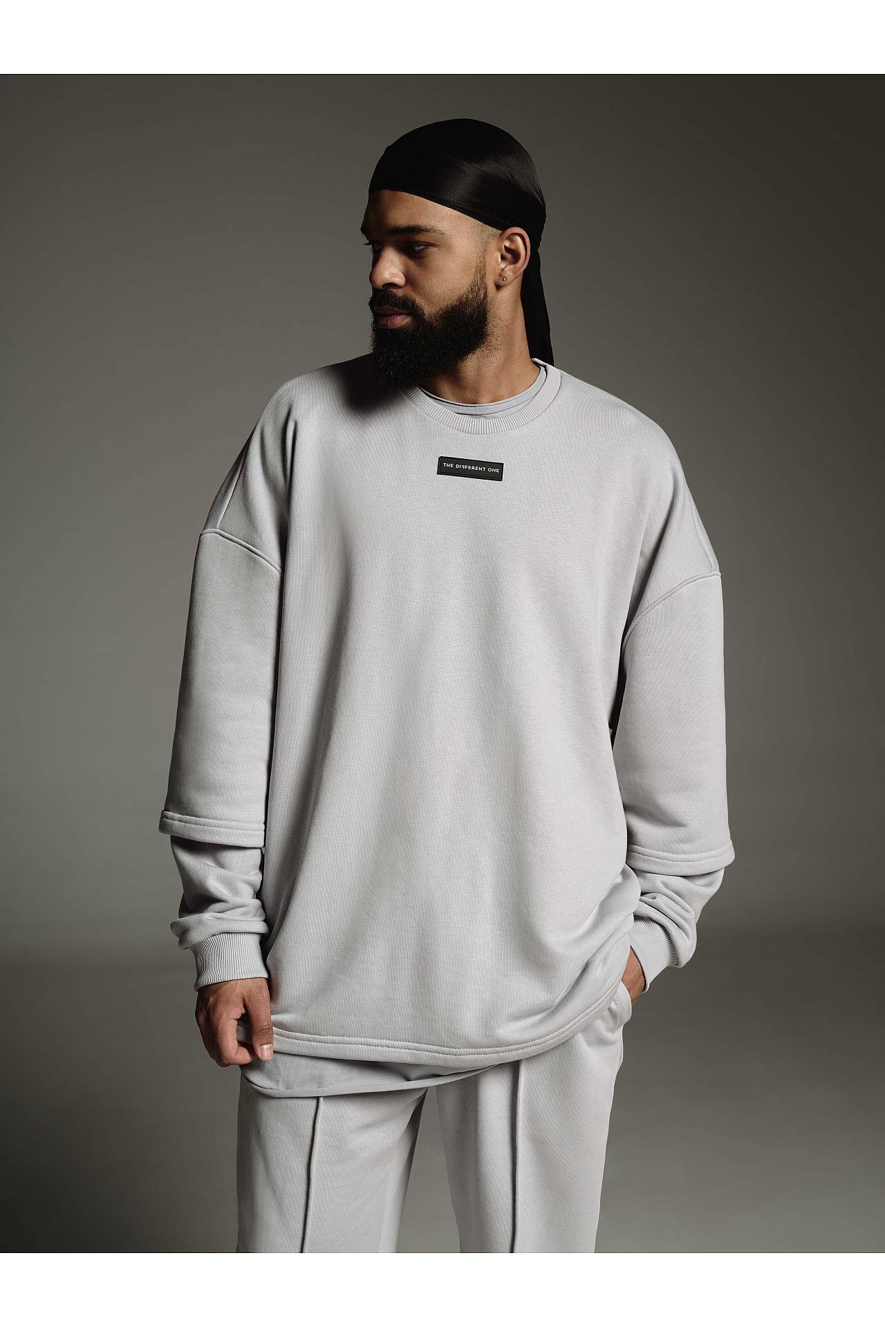 Лонг-футболка має oversized fit крій з вшитими рукавами лонгсліву від плечевого шва, що створює ефект багатошаровості та одягнутої футболки поверх лонгсліву.