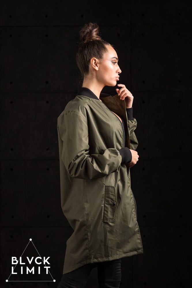 Бомбер жіночий подовжений зелений
