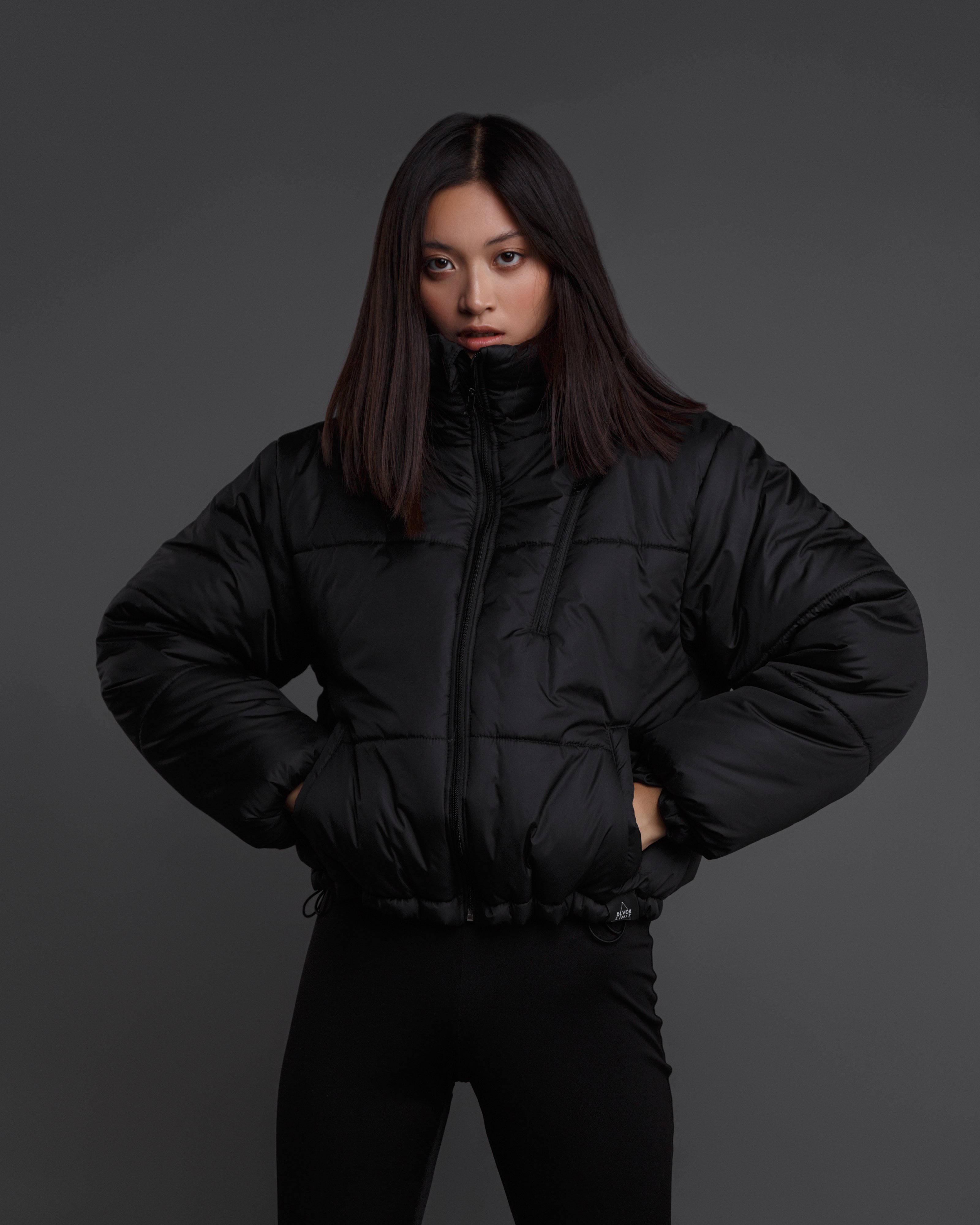 Вітрівка жіноча з принтом на рукавах чорна